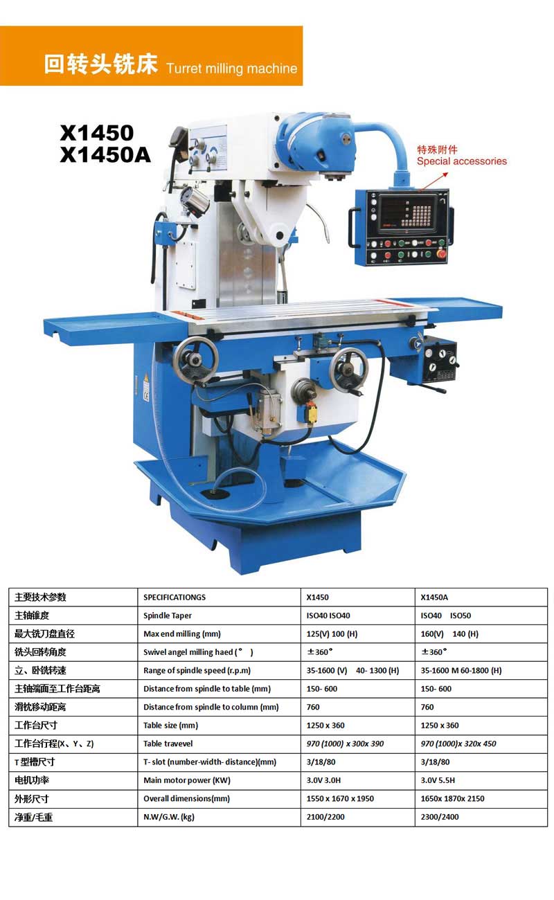 回轉(zhuǎn)頭銑床X1450/X1450A